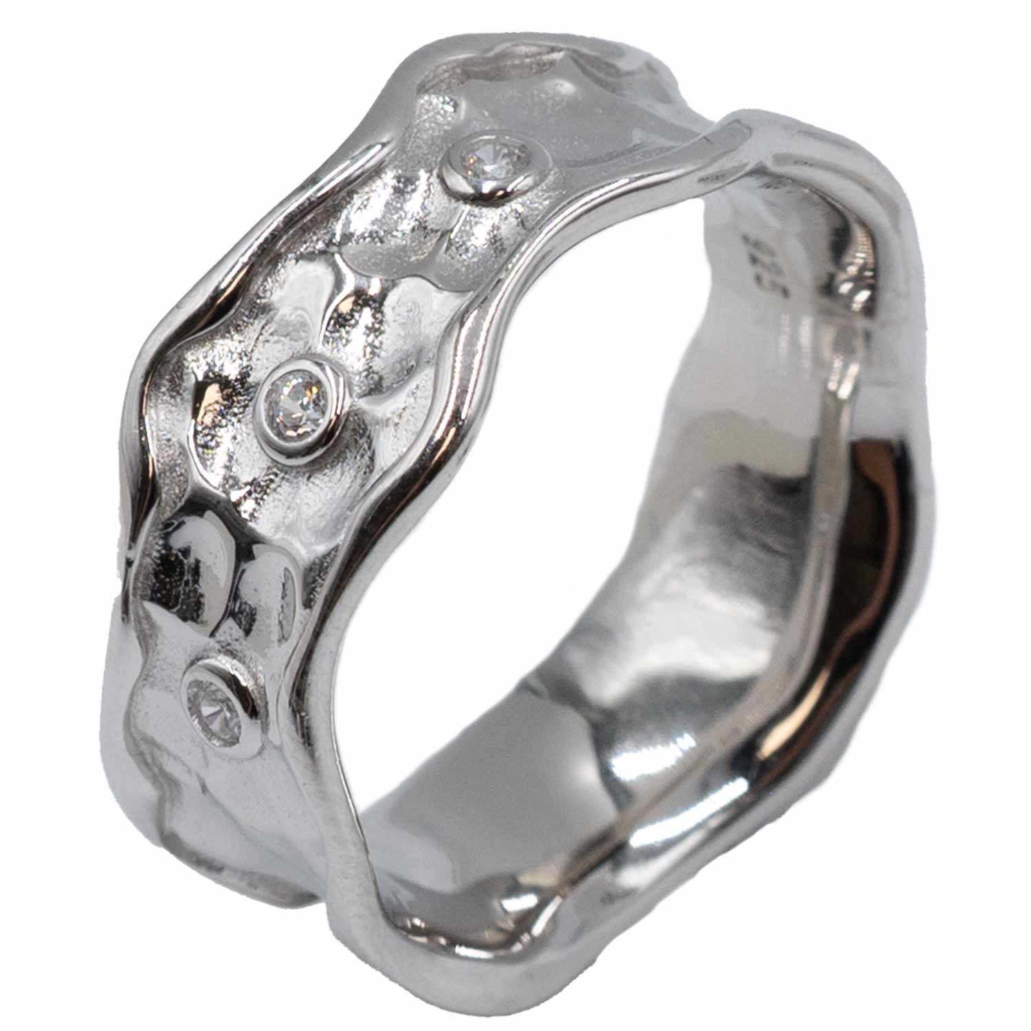 - Δαχτυλίδι ασημένιο επιπλατινωμένο με λευκά κρύσταλλα ζιργκόν υψηλής ποιότητας και διαύγειας