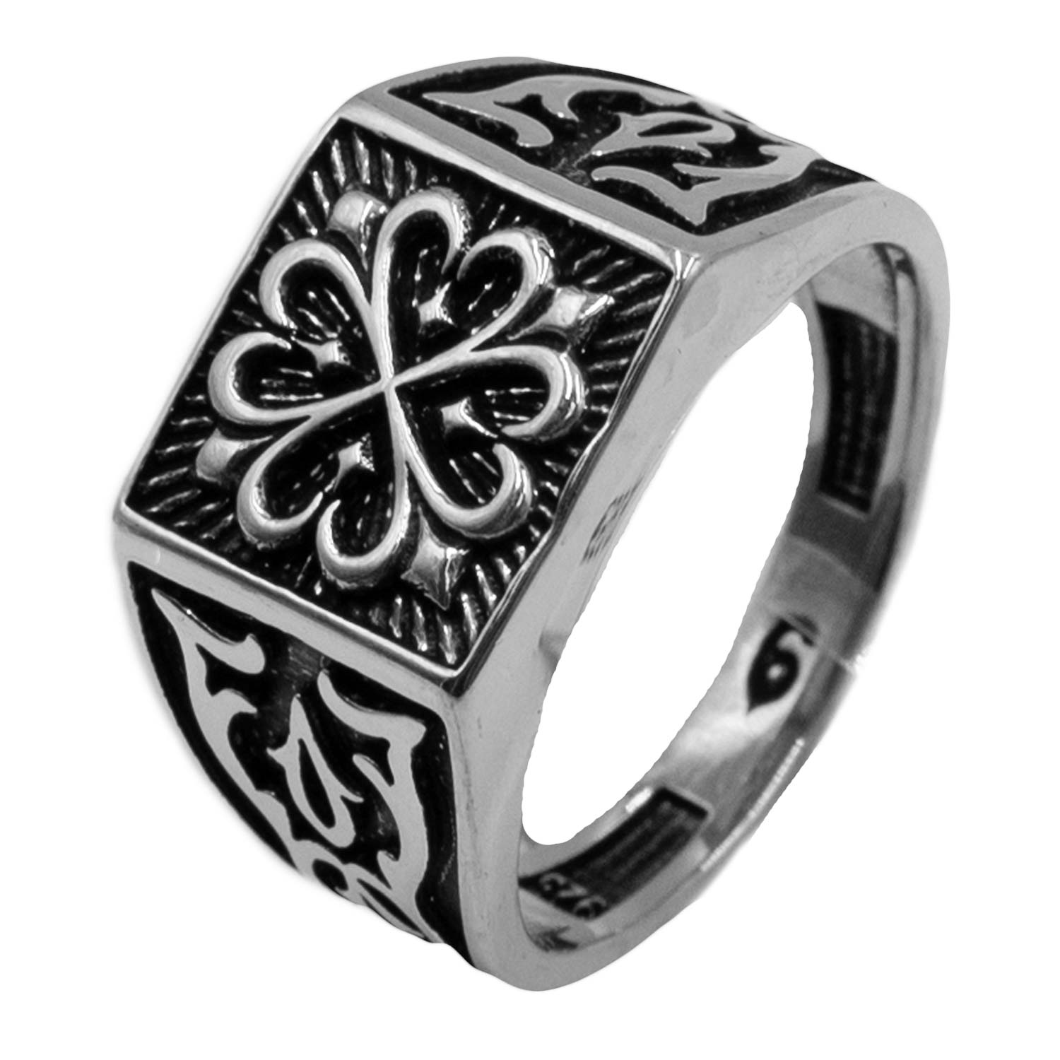 Αναδείξτε το προσωπικό σας στυλ με αυτό το εντυπωσιακό δαχτυλίδι από ασήμι 925, διακοσμημένο με περίτεχνα σκαλίσματα και ένα ξεχωριστό μοτίβο τετράφυλλου στο κέντρο. Ο σχεδιασμός του συνδυάζει την αυθεντικότητα με την κομψότητα, δημιουργώντας ένα κόσμημα που ξεχωρίζει για τη λεπτομέρεια και τη δύναμη του συμβολισμού του.
