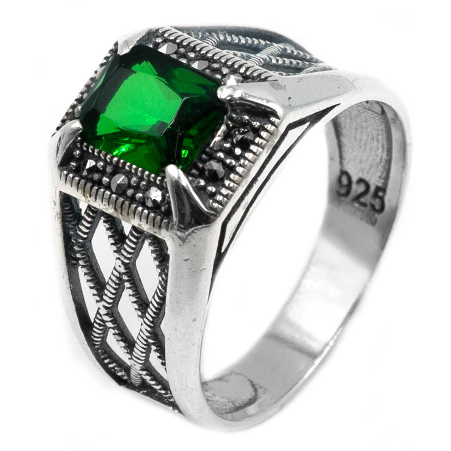 💍 Ανδρικό Δαχτυλίδι Ασημένιο 925 με Πράσινο Ζιργκόν