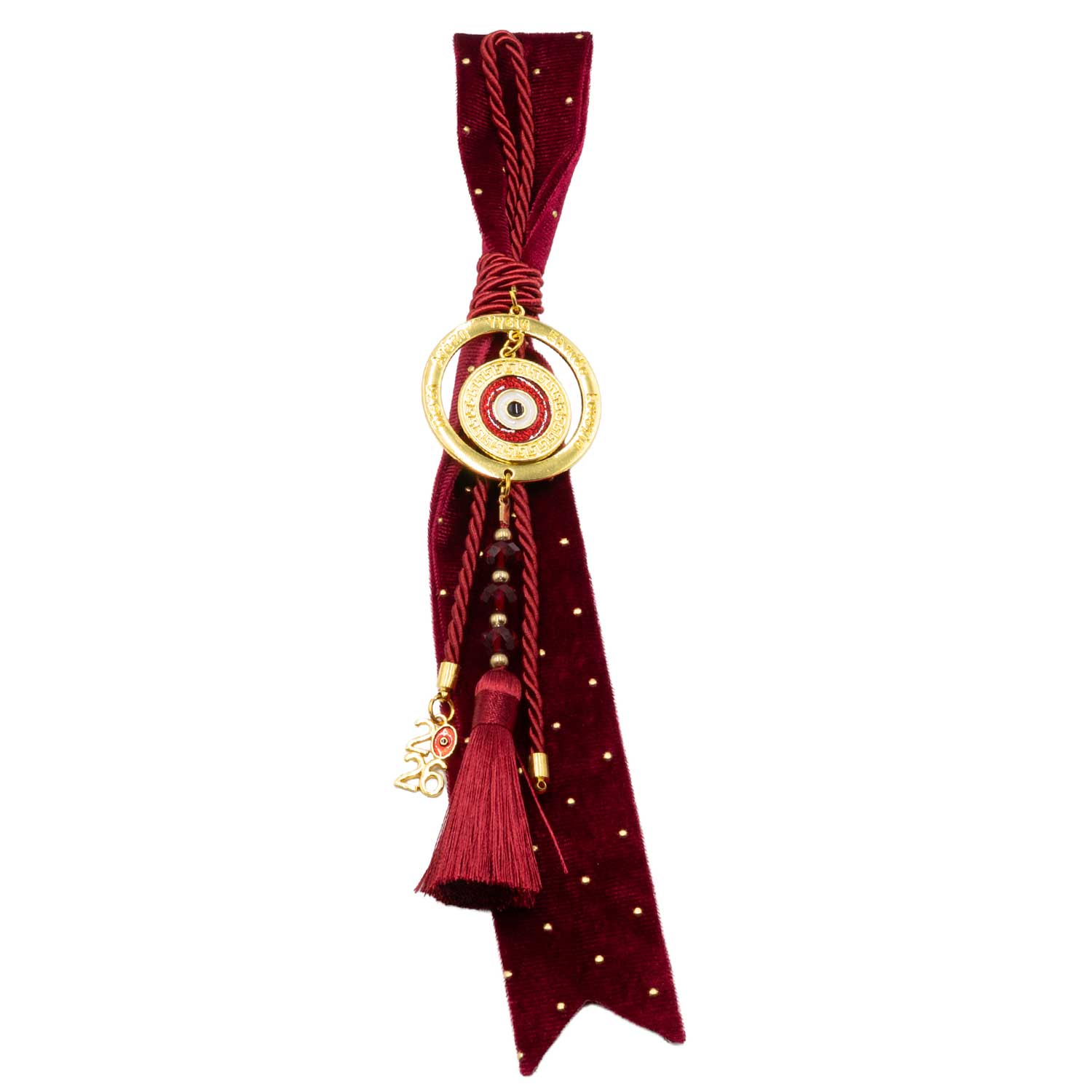Το γούρι διαθέτει έναν εντυπωσιακό φιόγκο με ανάγλυφη υφή, διακοσμημένο με κορδόνια σε ζωντανές αποχρώσεις, λαμπερές χάντρες και μια υπέροχη φούντα που ολοκληρώνει το σύνολο με αριστοκρατικό ύφος.