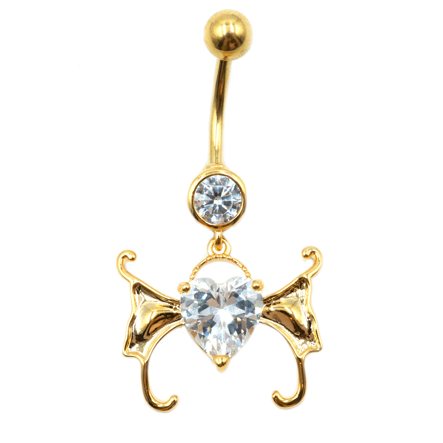 Σκουλαρίκι Αφαλού από Ατσάλι Επιχρυσωμένο με Ζιργκόν και Σχέδιο από Μπρούτζο- BELJ438