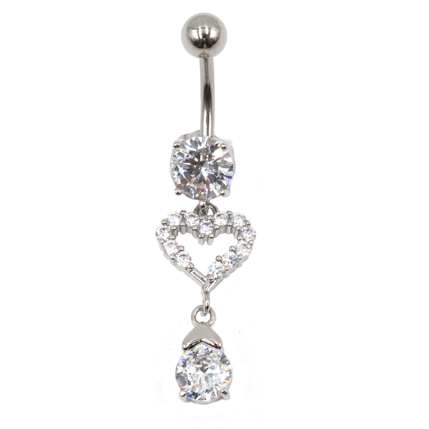 • Σκουλαρίκι Αφαλού από Χειρουργικό Ατσάλι με Ζιργκόν και Κρεμαστό Σχέδιο από Μπρούτζο Επαργυρωμένο