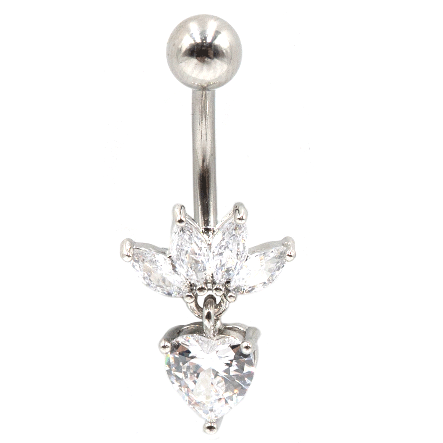 • Σκουλαρίκι Αφαλού από Χειρουργικό Ατσάλι με Ζιργκόν και Κρεμαστό Σχέδιο από Μπρούτζο Επαργυρωμένο