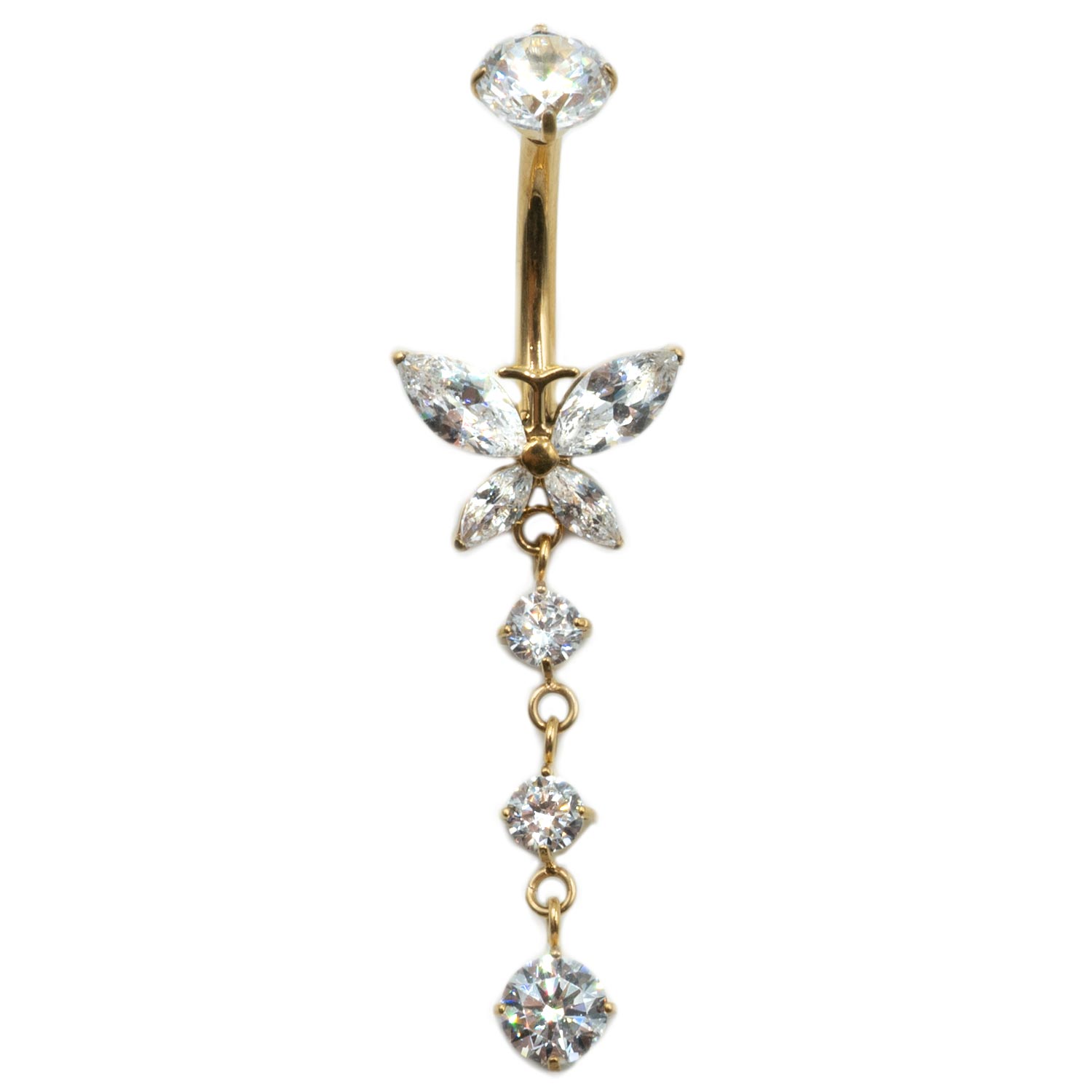 Σκουλαρίκι Αφαλού από Τιτάνιο Επιχρυσωμένο και Σχέδιο με Ζιργκόν – TB-1929