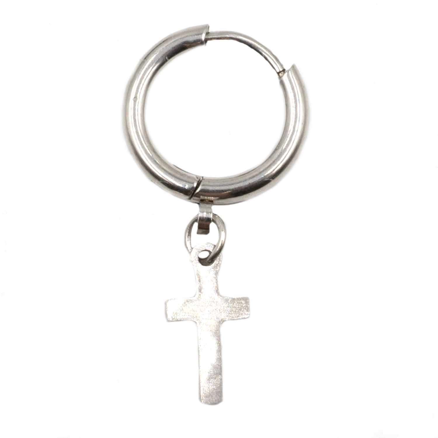 • Σκουλαρίκι Αυτιού από Χειρουργικό Ατσάλι Κρίκος με Σχέδιο Σταυρό και Εύχρηστο Κούμπωμα Ασφαλείας Κλίκερ