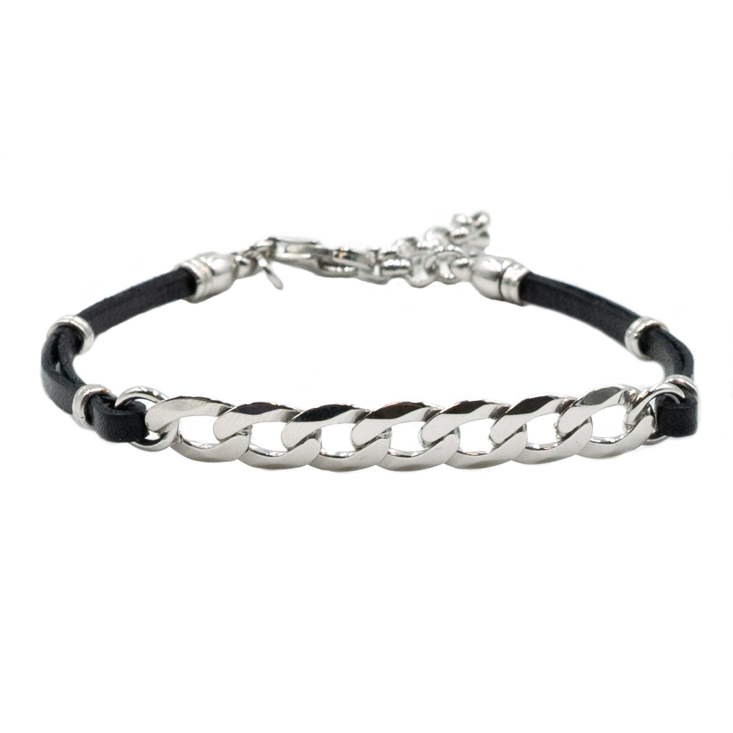 Ανακαλύψτε την κομψότητα και τη διαχρονική αισθητική με το βραχιόλι ιταλικής προέλευσης από ασήμι 925 με δέρμα. Ένα μοναδικό κόσμημα που συνδυάζει την πολυτέλεια του αυθεντικού ασημιού με την αυθεντική υφή του υψηλής ποιότητας δέρματος, δημιουργώντας έναν εκλεπτυσμένο συνδυασμό.