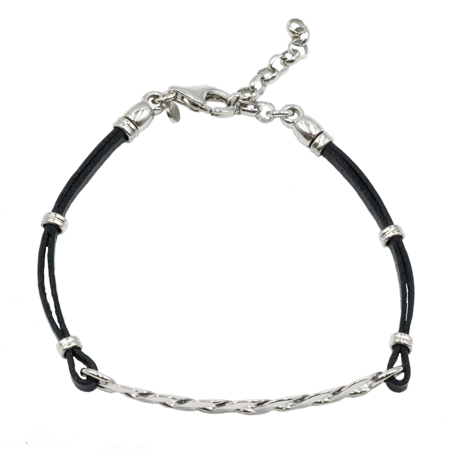 Βραχιόλι Χεριού Ασημένιο Επιπλατινωμένο με Δέρμα – SBIT33