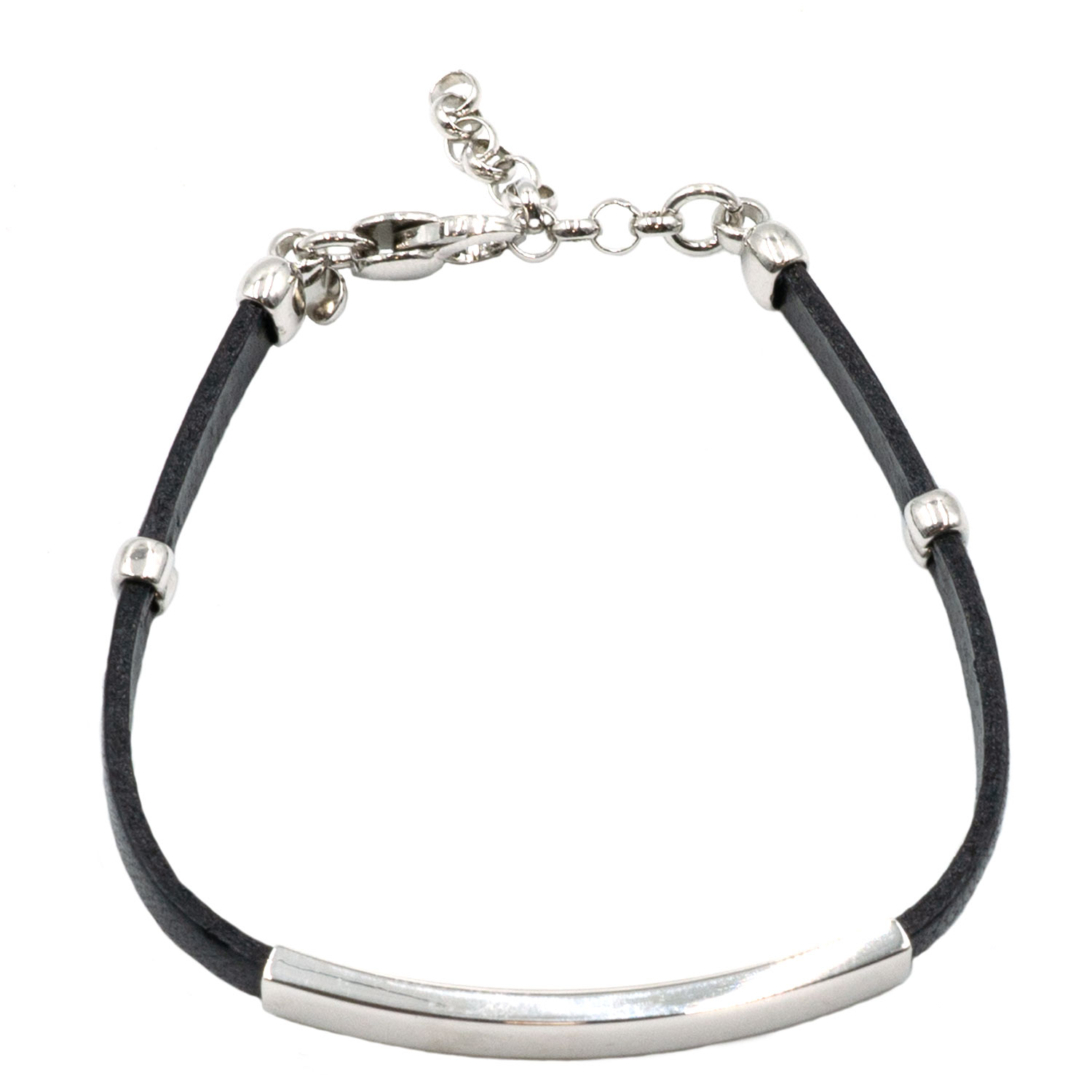 Βραχιόλι Χεριού Ασημένιο Επιπλατινωμένο με Δέρμα – SBIT34