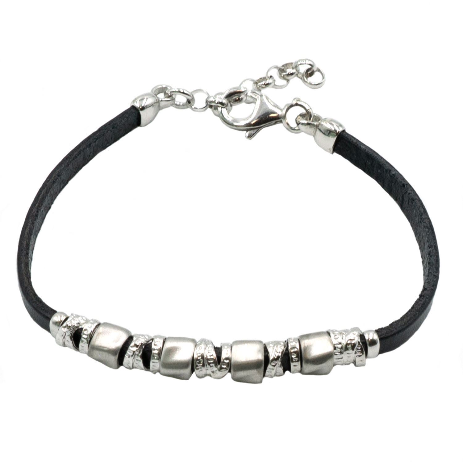 Βραχιόλι Χεριού Ασημένιο Επιπλατινωμένο με Δέρμα – SBIT35
